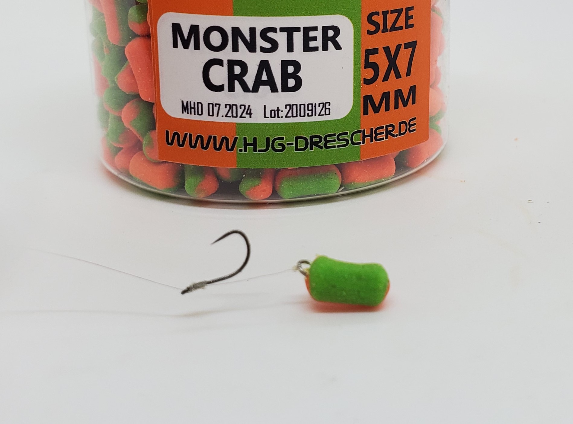 Dieser zweifarbige Hakenköder hat ein ausgeprägtes Krabben Aroma. Die Kombination aus grün und orange macht den Köder sehr auffällig und sorgt dafür, dass er sich vom nahezu jedem Untergrund abhebt. Der auftreibende Wafter ist so ausbalanciert das er mit einem 18er Haken zum Absinken gebracht wird. Der Köder ist so leichter und kann von Fischen besser aufgenommen werden.
